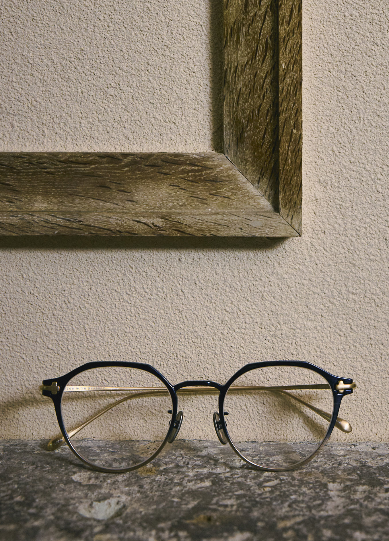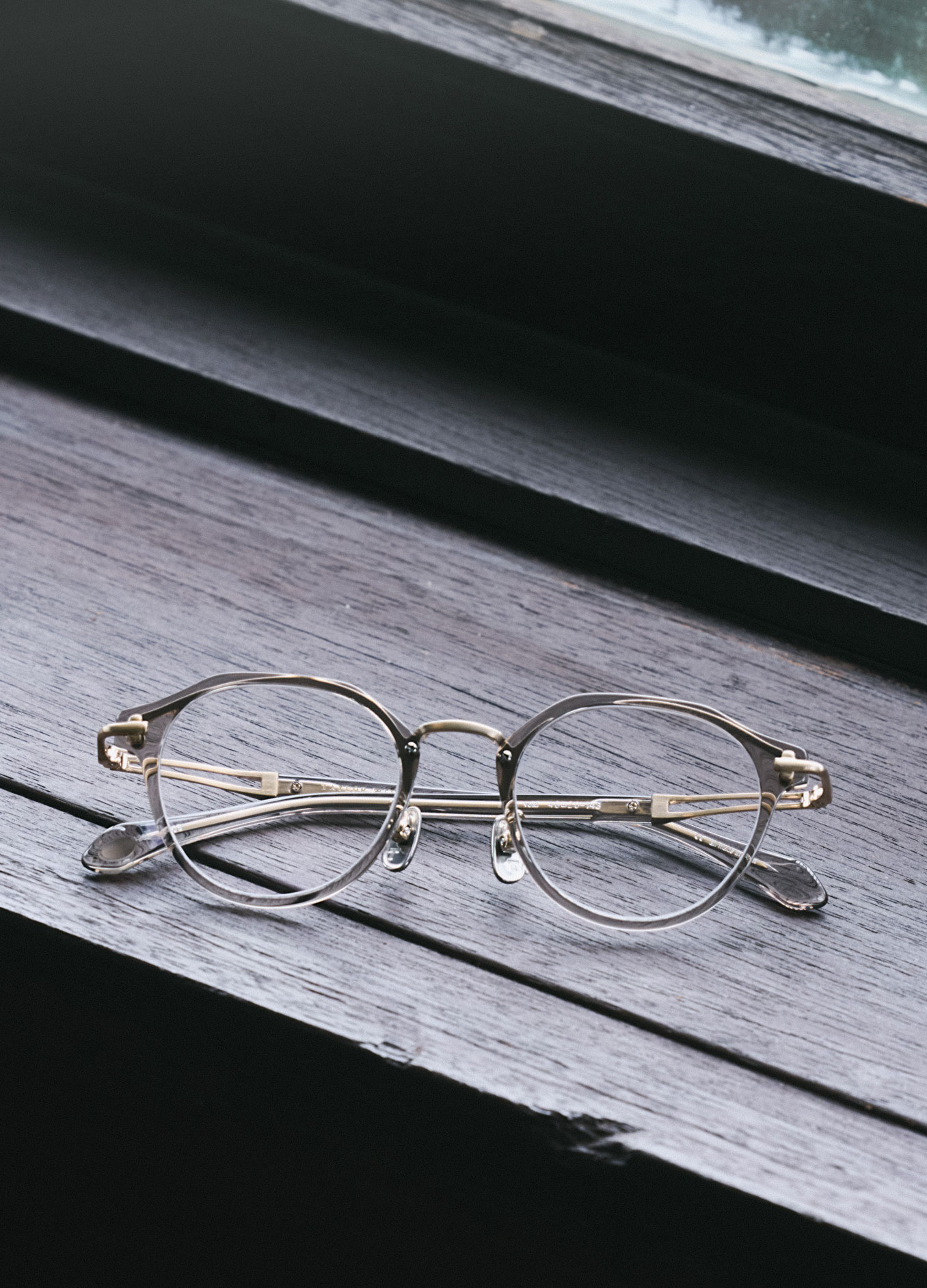1940年代のフランスで人気を博した“クラウンパント”を現代的に再解釈し、顔馴染みの良い造形へと仕立てました。丸みを帯びた柔らかさと、上部をすぱっと切り落としたようなラインが、表情を穏やかに整えつつも凛とした印象をもたらします。レンズサイズをやや大きめに設計することで、ゆったりとした雰囲気に。同時に上辺の角が全体を程よく引き締め、洗練さと親しみを兼ね備えた1本に仕上げています。