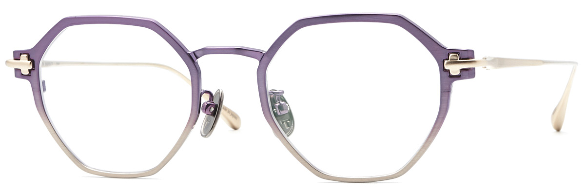 ギリシャ語で8を意味する「オクタ」。今では個性的な印象の八角形デザインも、1920年代には主流眼鏡フレームのひとつでした。今では特徴的に感じるこのデザインを、丁寧に整えることで現代でも掛けやすいフレームへと進化させています。繊細なグラデーションカラーは気持ちが華やぐ仕立てです。