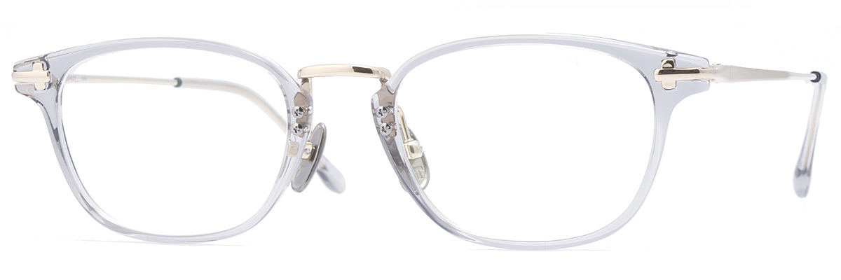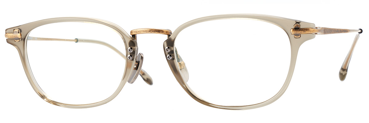 union is the combination frame which connects acetate rims with the original titanium bridge. It has achieved astounding lightness by the slim β titanium S-line temples and as thinnest acetate front as possible to keep the strength. The frame has exquisite balance. The front shape is wellington.
